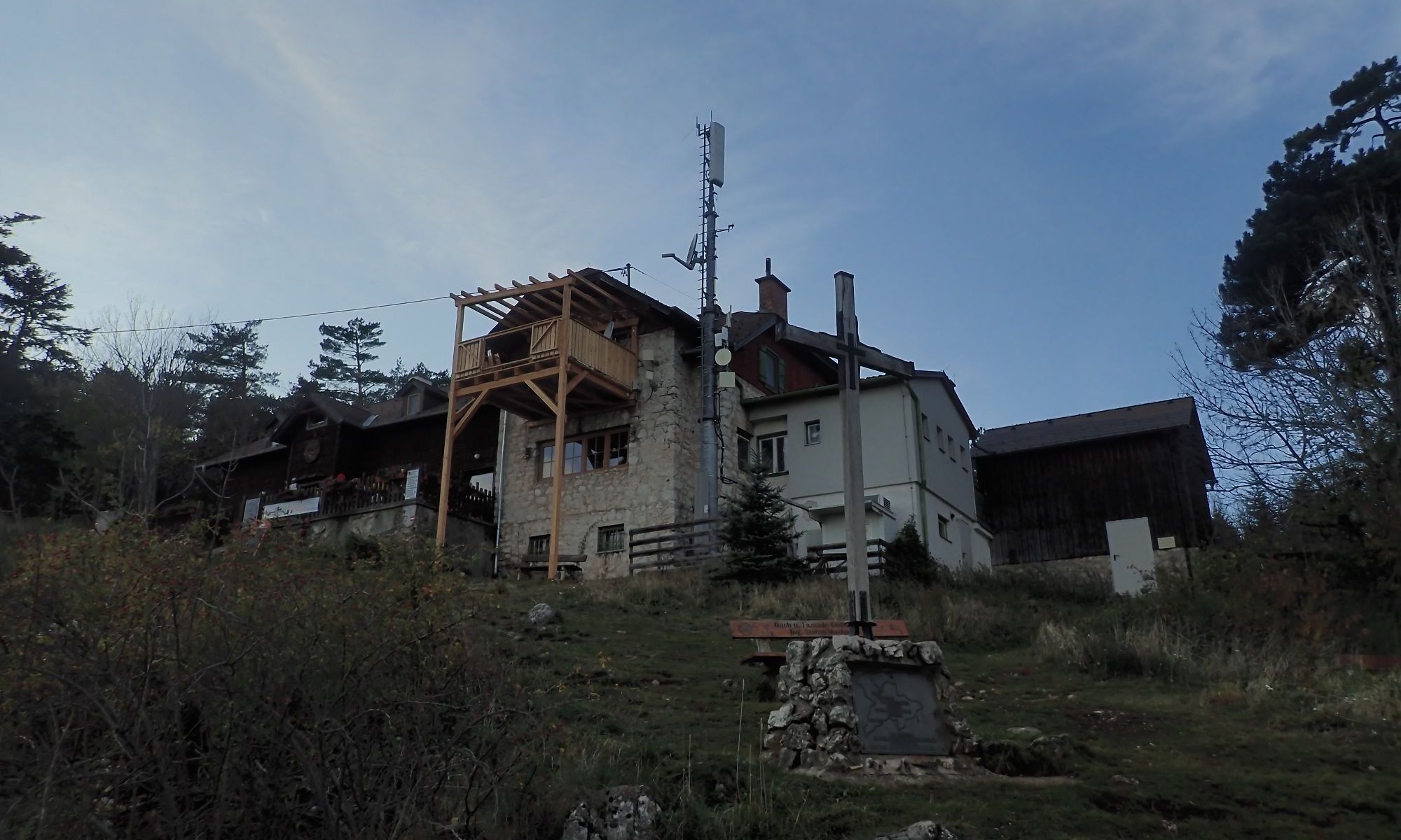 Nun (rot) in nordöstlicher Richtung ein kurzes Stück der Mautstraße folgen, anschließend über einen Wanderweg Richtung Herrgottschnitzerhaus 826m (private Schutzhütte) folgen.
