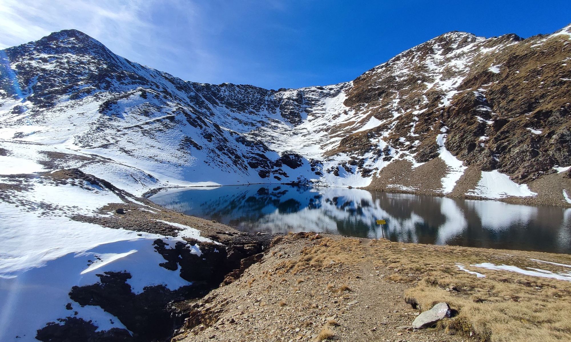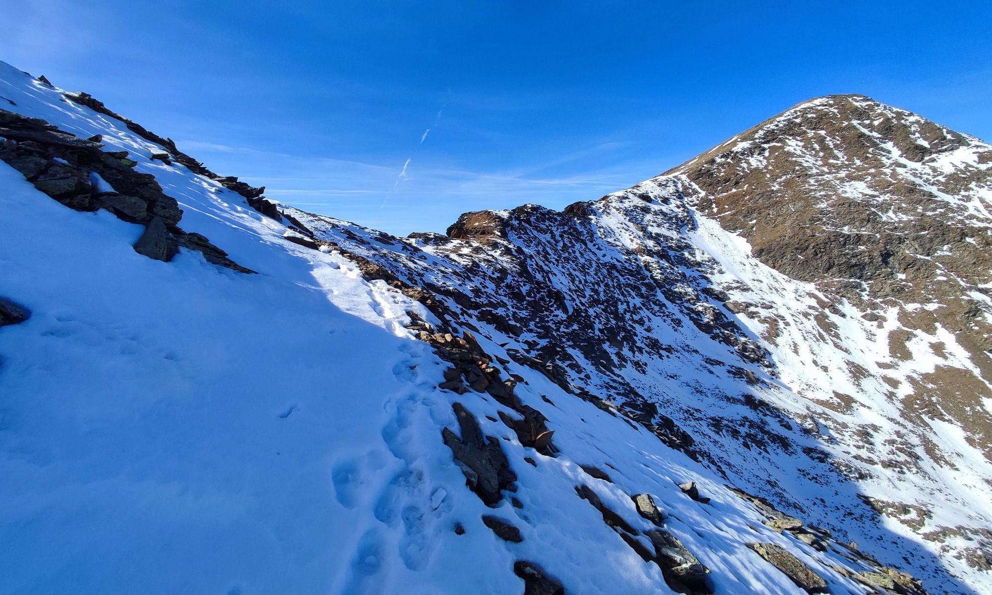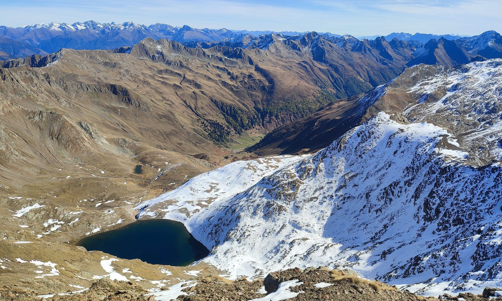 Nun dem Wegweiser Richtung Degenhorn folgen, Steig 19 (rot). Über die Tröger 2580m geht es weiter bis zum Degensee 2720m. Nun wird das Gelände zunehmend felsiger jedoch bis zum Kleinen Degenhorn 2849m unschwierig. Ab hier muss der Ostgrat leicht ausgesetzt überwunden werden, der Schlussaufstieg auf das Großes Degenhorn 2946m ist wieder unschwierig.